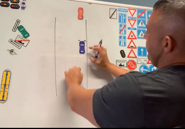 20 meter achteruit rijden in een rechte lijn