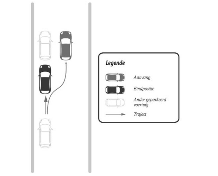 evenwijdig ten opzichte van de weg links parkeren tussen 2 voertuigen